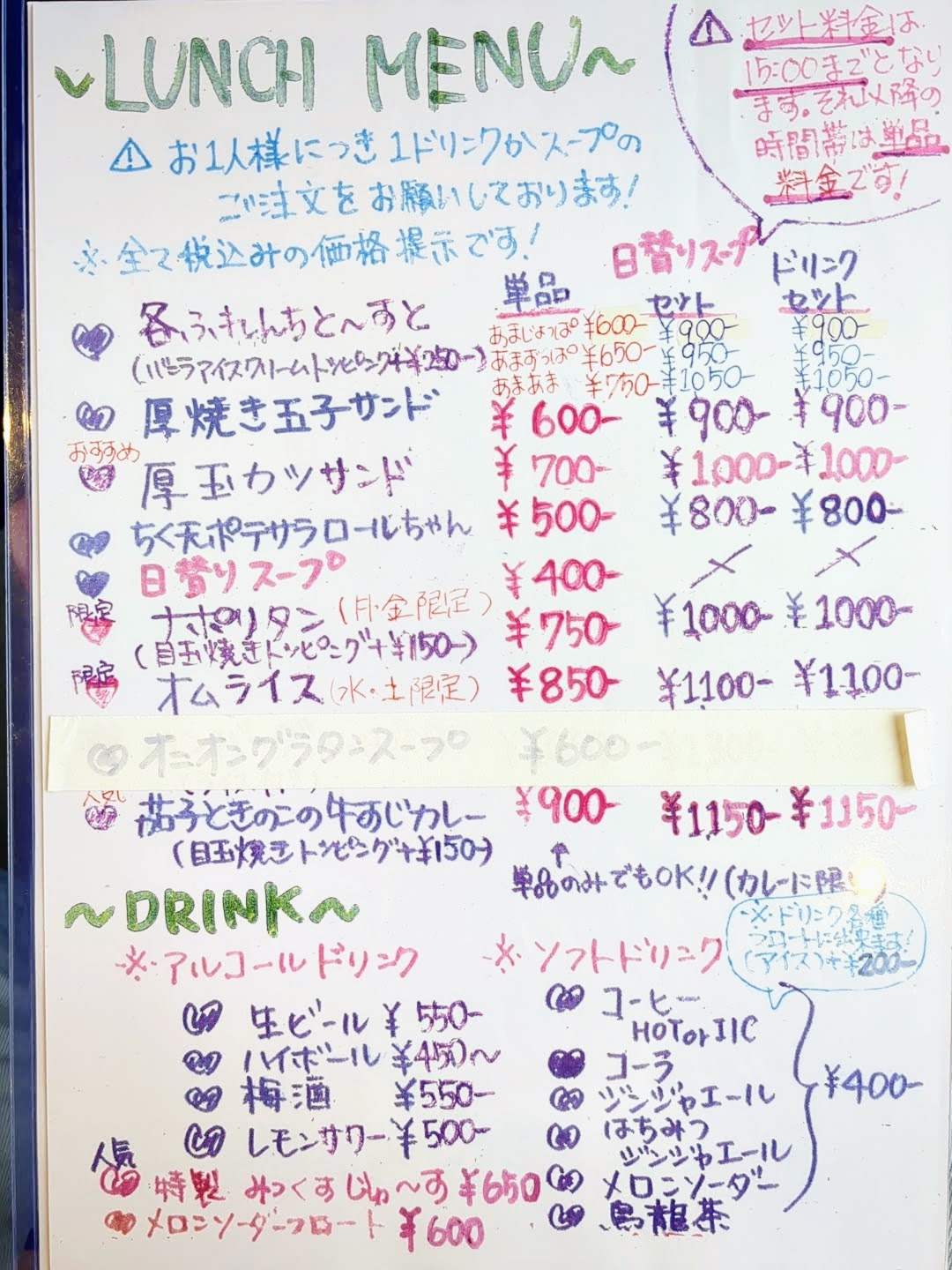 | 厚玉カツサンド セット | 税込1,000円 |