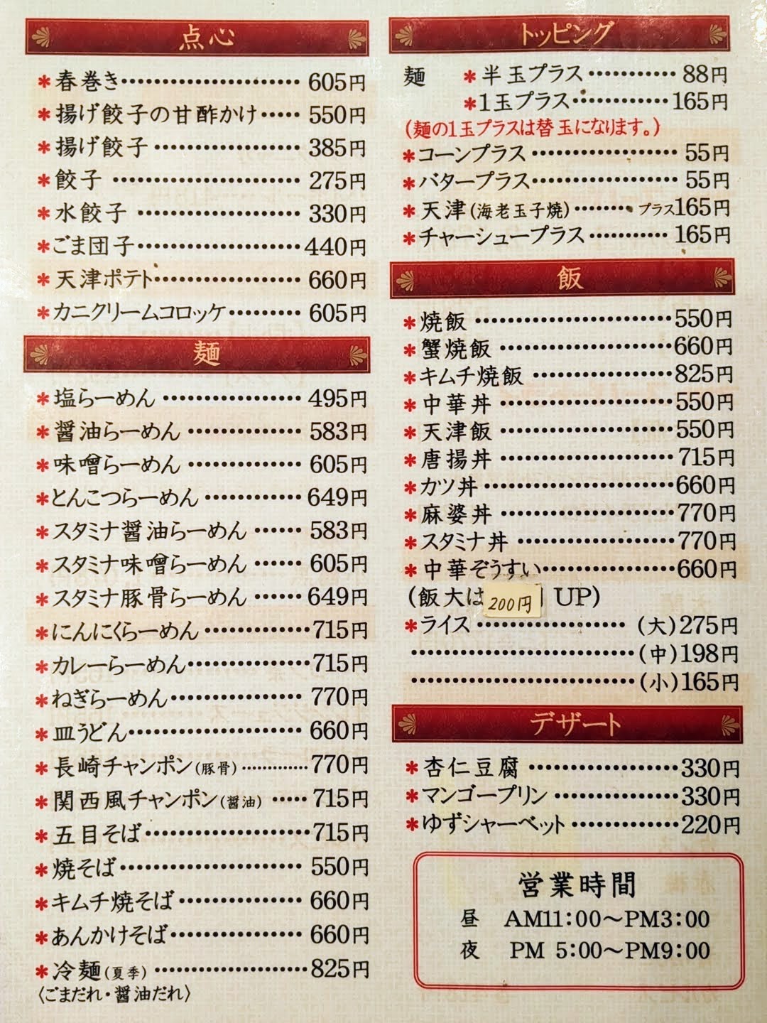 中華料理 ターボー-営業情報