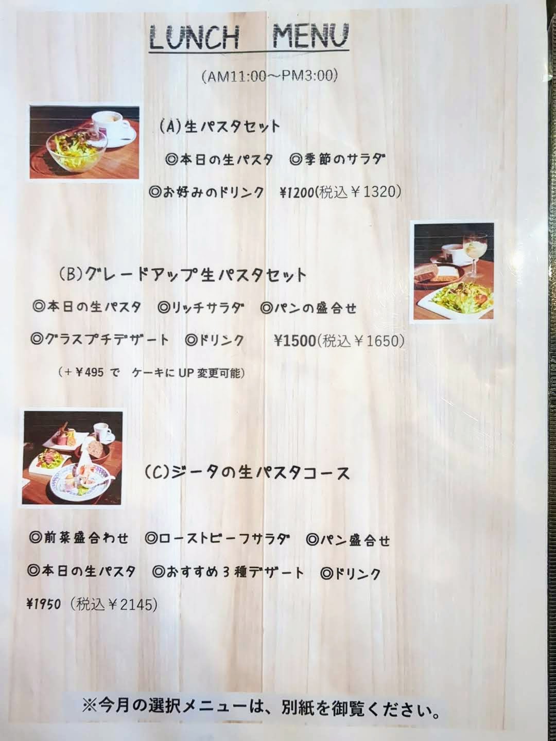 | ジータの生パスタコース | 1,950円(税込2,145円) |