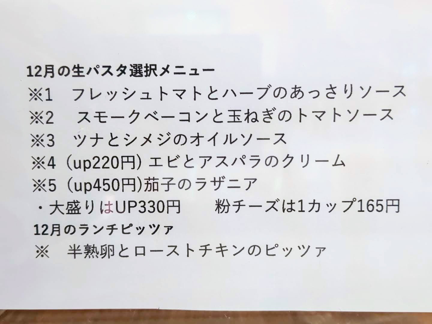 本日の生パスタは月替わりで、5種類から選べるようになっていました。
