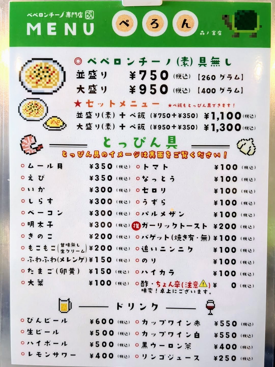 | ペペロンチーノ大盛り 400g | 税込950円 |