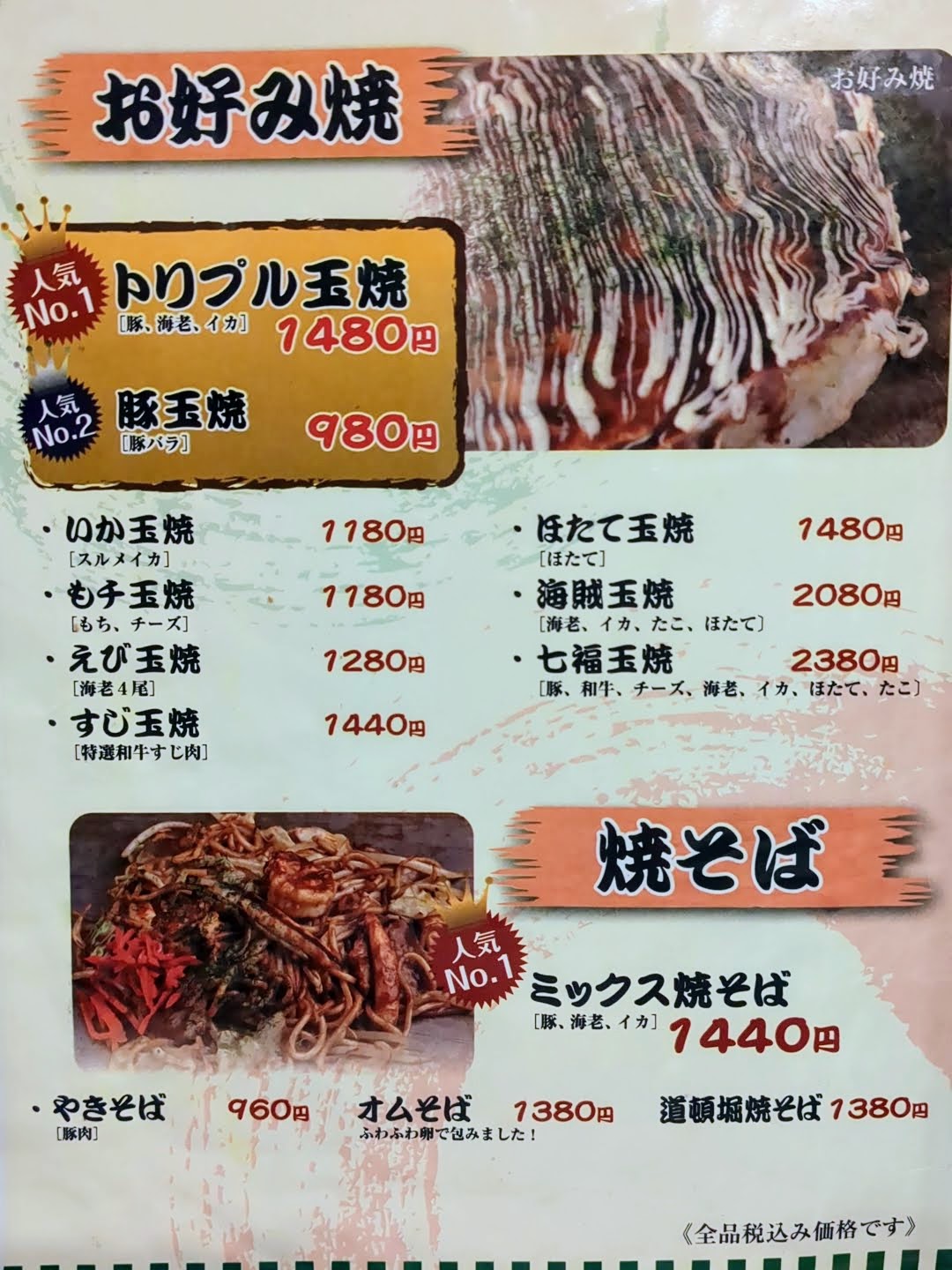 食事のメニューは、ねぎ焼き、お好み焼き、焼きそばに分類されていました。