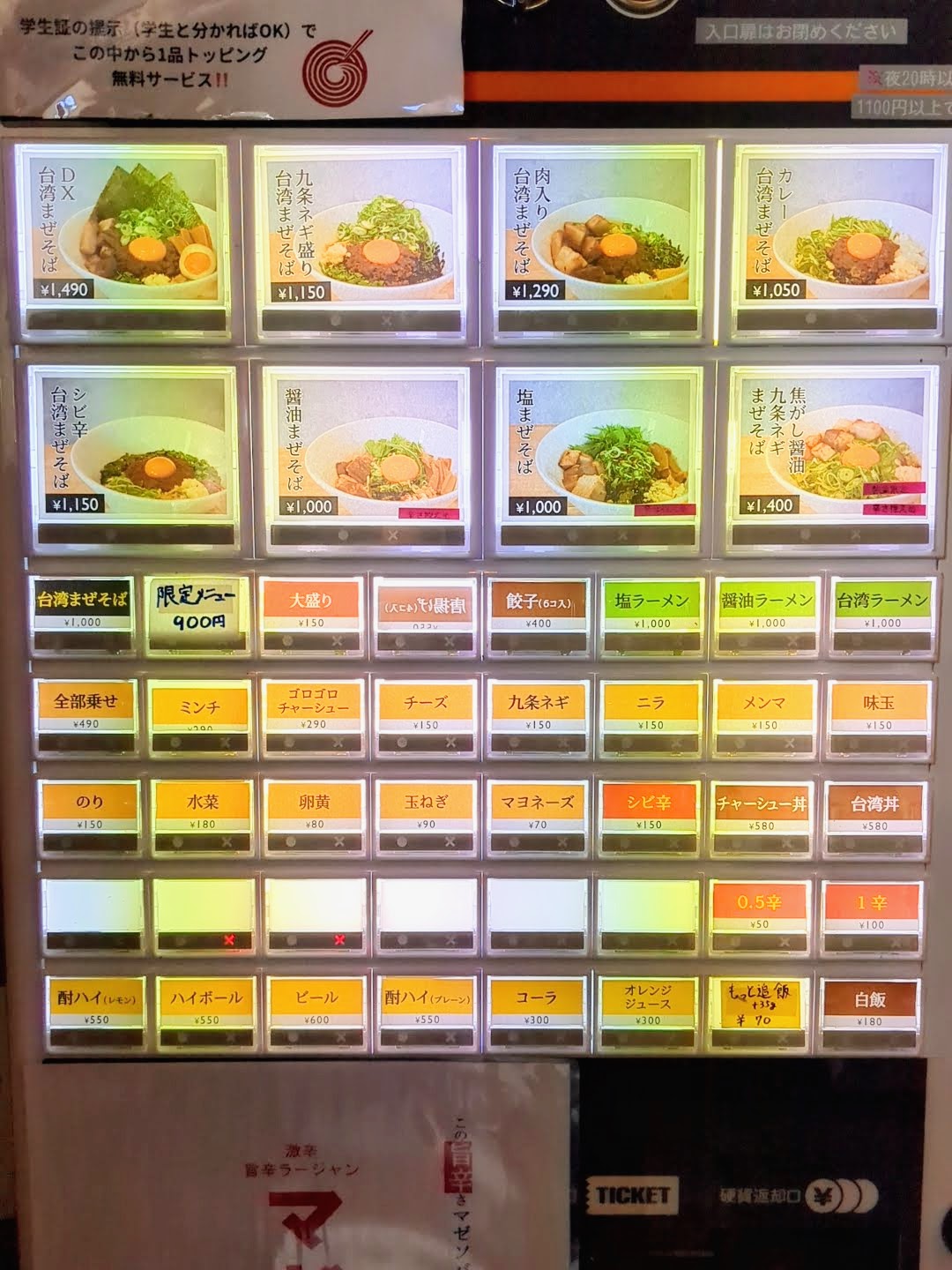 肉入り台湾まぜそば(税込1,290円)が、ランキングの1位です。