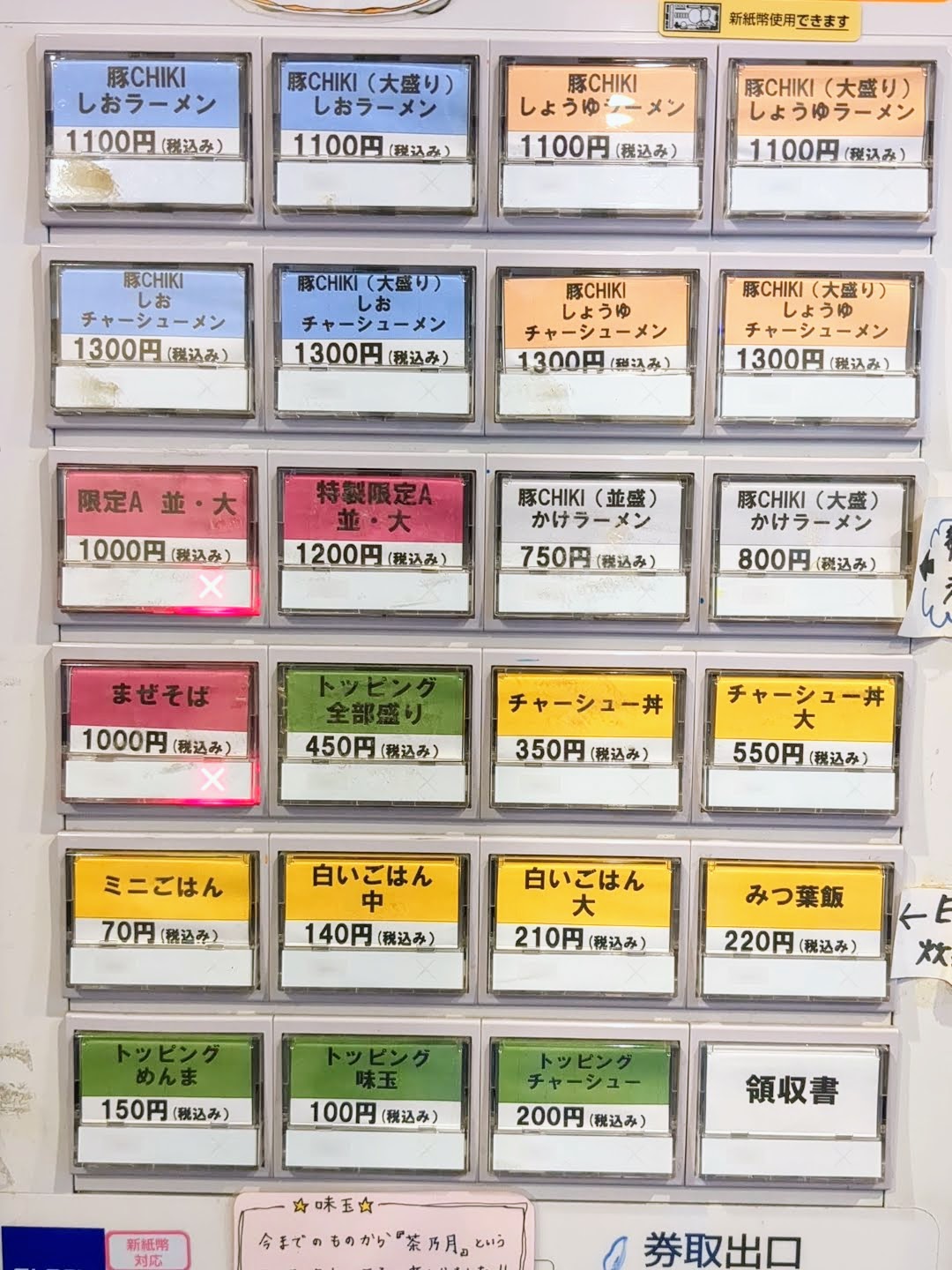 | 豚CHIKIしおラーメン | 税込1,100円 |