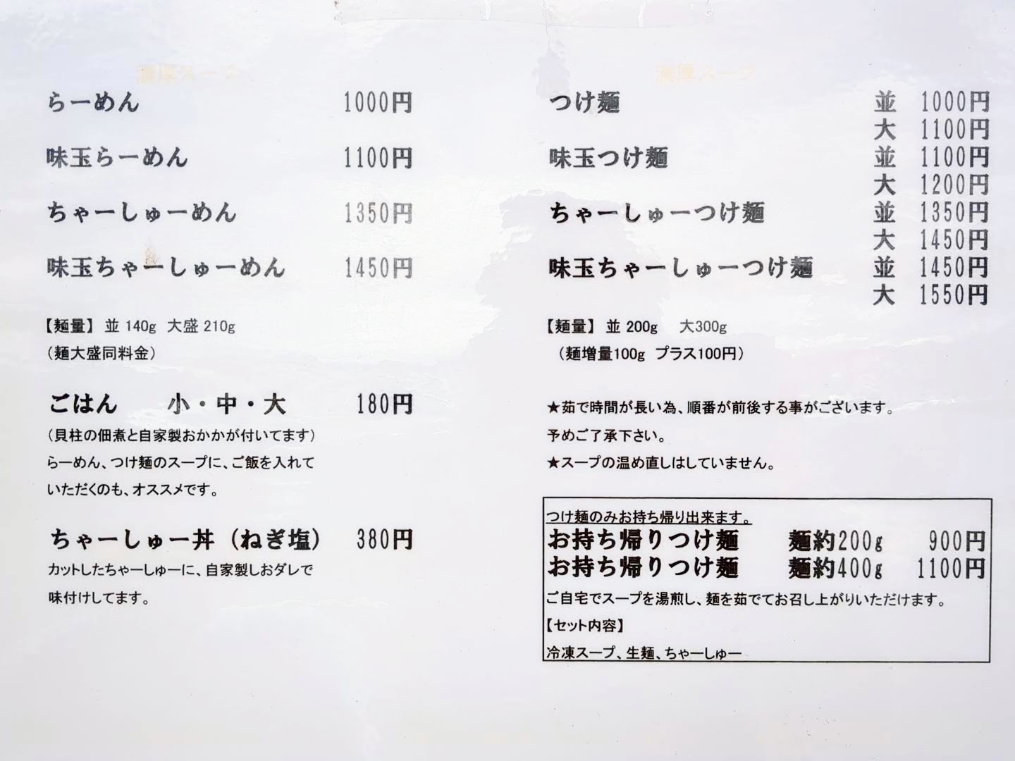 らーめんは並盛りが140g、大盛りが210gで、料金は同じです。つけ麺は並盛りが200g、大盛りが300gで、大盛りはプラス100円になります。