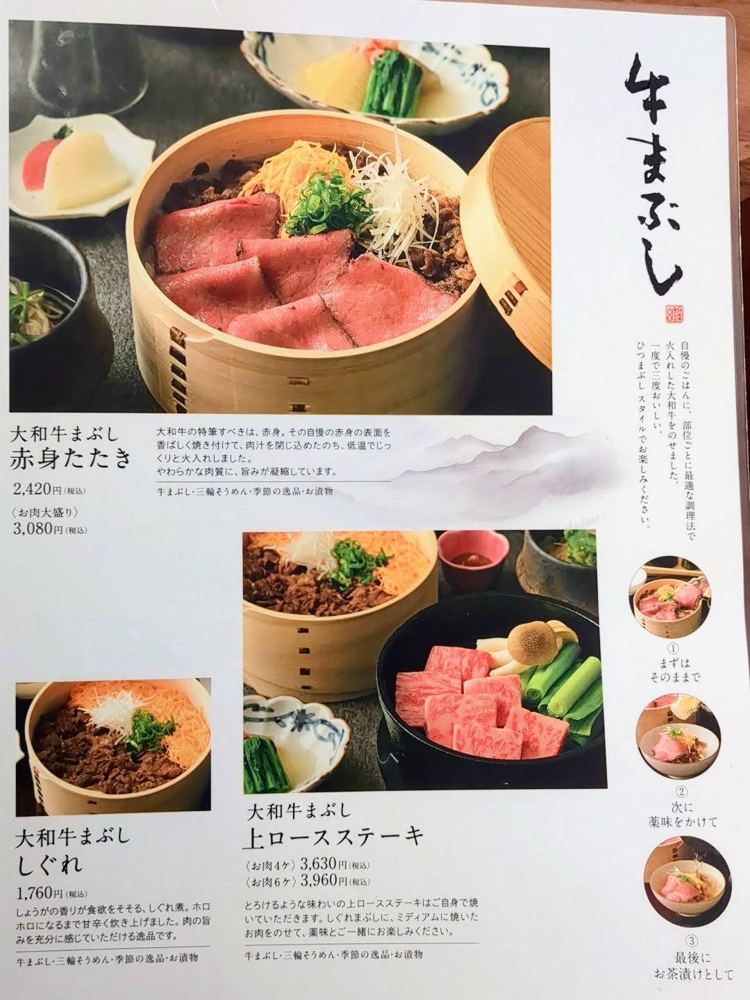 大和牛まぶし しぐれ以外は、肉の大盛りがありました。メニューは「ももしき」本店と同じです。