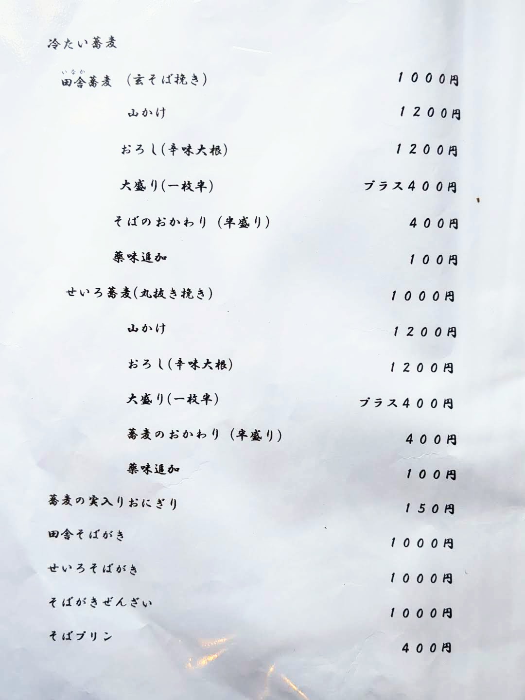 | 冷たい 田舎蕎麦(玄そば挽き) | 税込1,000円 |