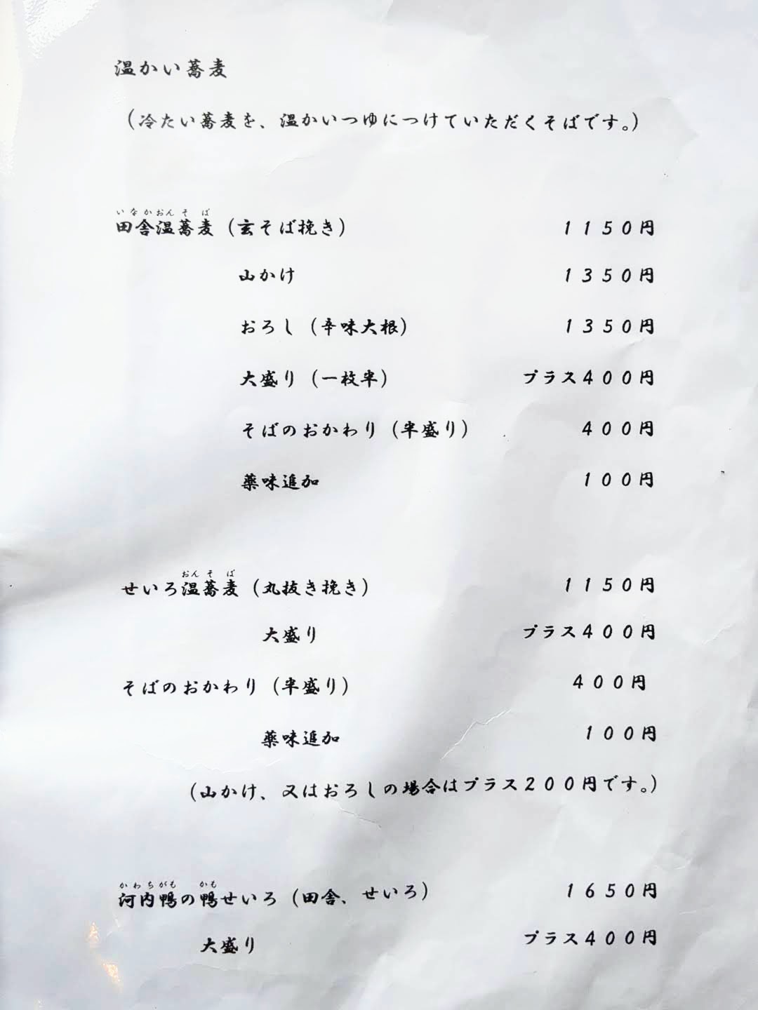 | 温かい 田舎温蕎麦(玄そば挽き) | 税込1,150円 |