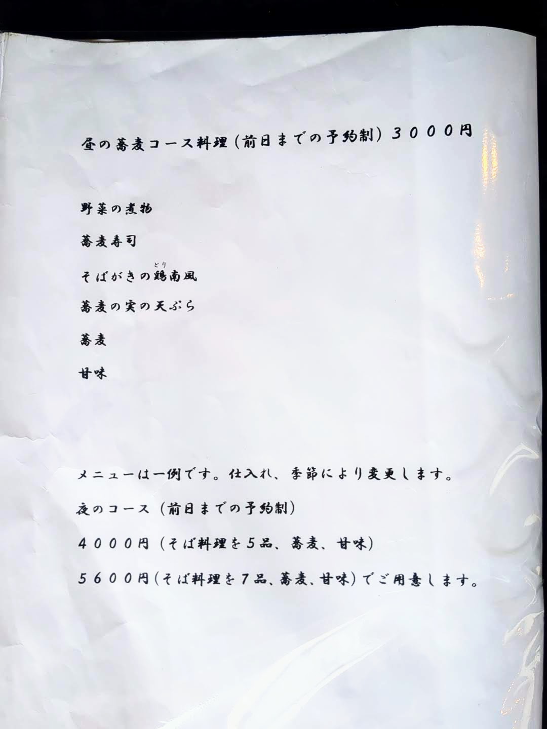 前日までの予約制で、昼の蕎麦コース料理(税込3,000円)もありました。