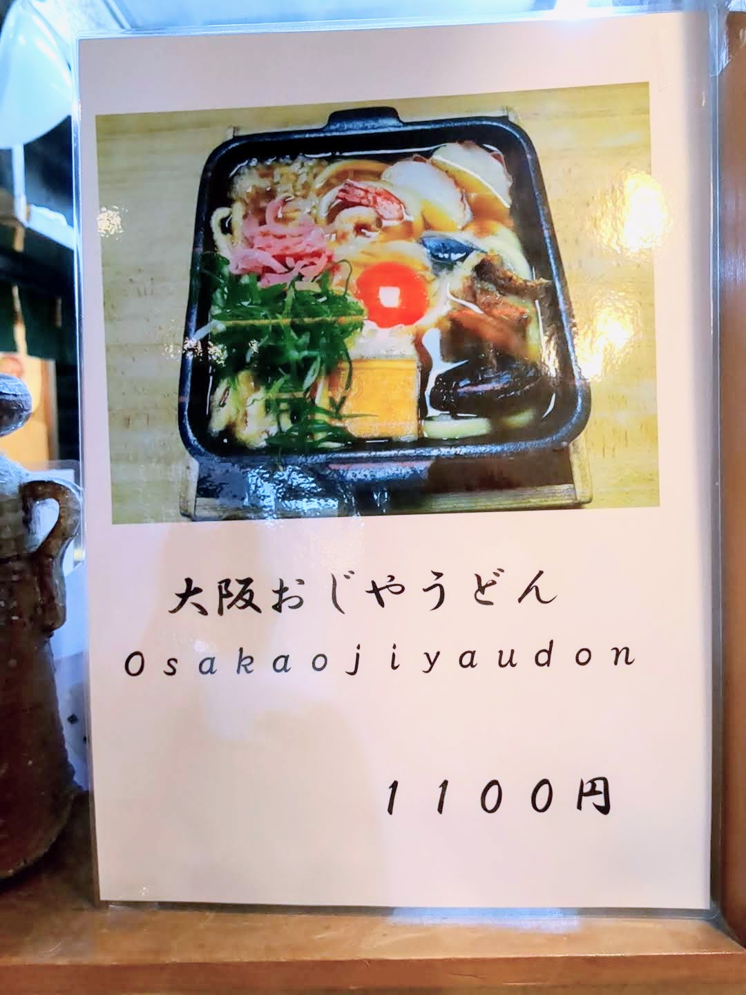 大阪おじやうどん(税込1,100円)になると、海老の天ぷら、魚の切り身、伊達巻きが加わります。