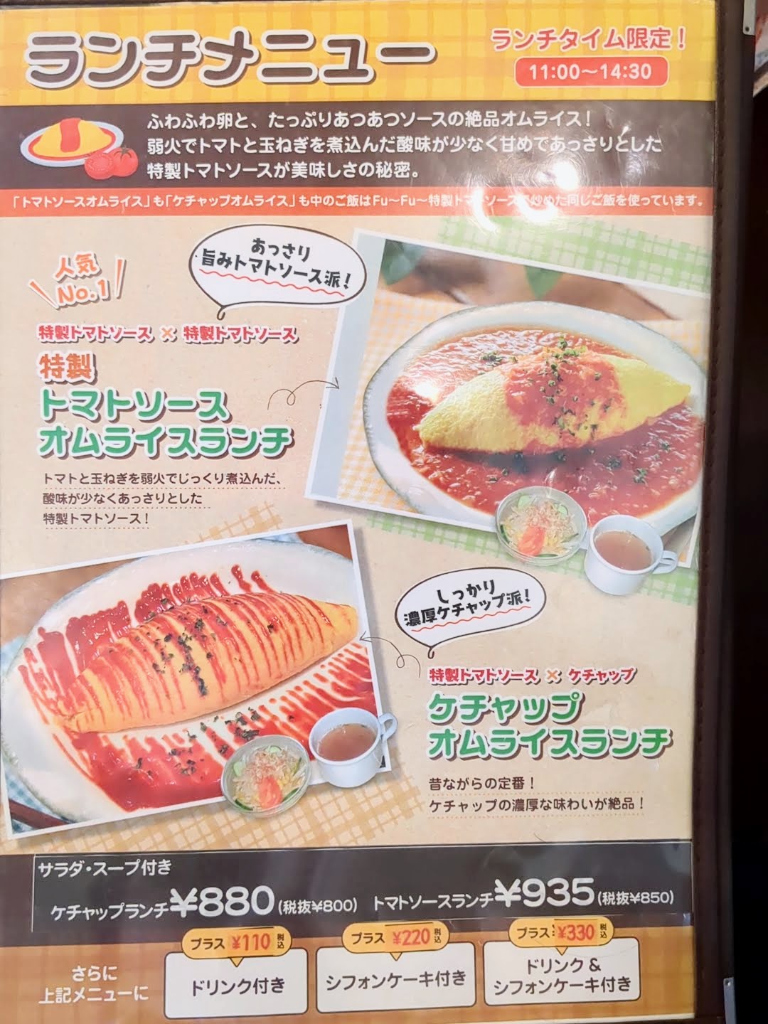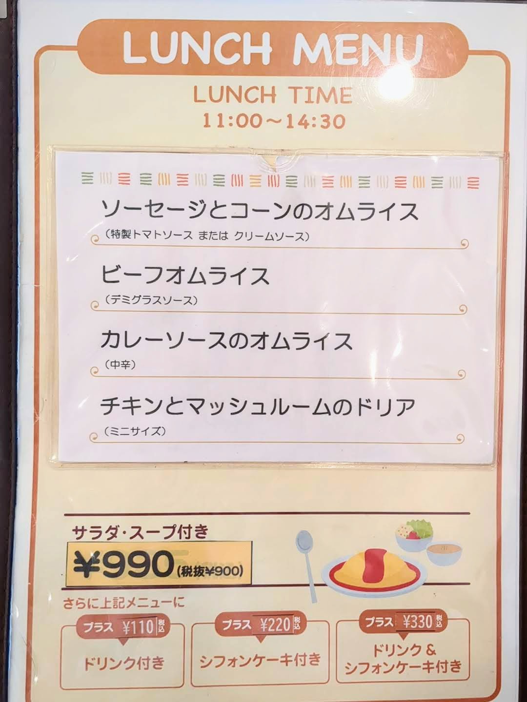 | ケチャップオムライスランチ | 税込880円 |