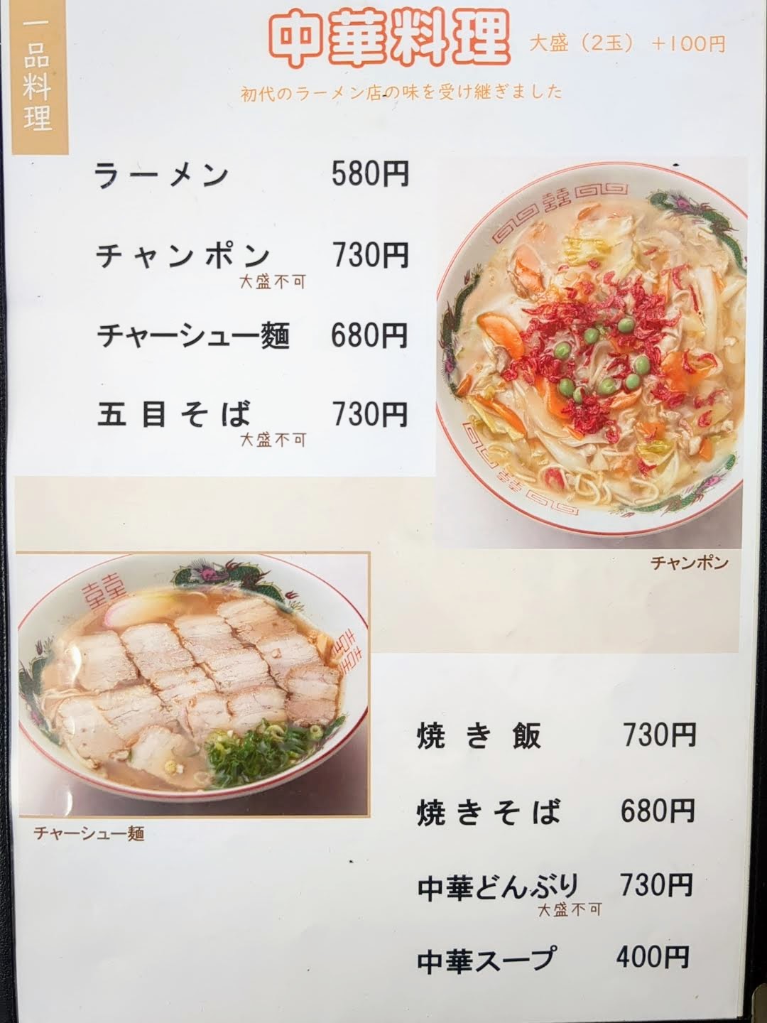 初代はラーメン屋で、チャンポンやラーメンも提供しています。